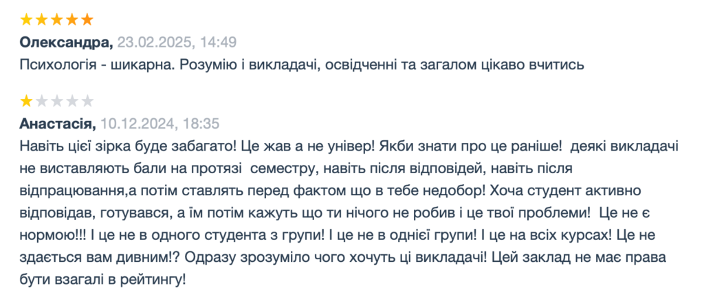Одно из старейших и одновременно престижных учреждений высшего образования Украины. Это место, где встречаются традиции и инновации, где студенты могут получить лучшее образование и развить свой потенциал. Отзывы о ВУЗе разные.